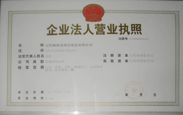 遼陽鵬泰成保安服務(wù)有限公司成立于2011年6月,是經(jīng)省公安廳及遼陽市公安局批準,市工商局審批注冊,并在遼陽市公安局指導(dǎo)下成立的正規(guī)集團公司。2015年納入公安局“天眼五護工程”試點單位。