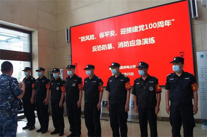 “防風(fēng)險(xiǎn)、保平安、迎接建黨100周年”反恐防暴、消防應(yīng)急演練6月25日在遼陽(yáng)縣電業(yè)局開展,演練包括保安隊(duì)列訓(xùn)練、消防器材使用培訓(xùn)、反恐防暴應(yīng)急演練,演練取得了圓滿成功。